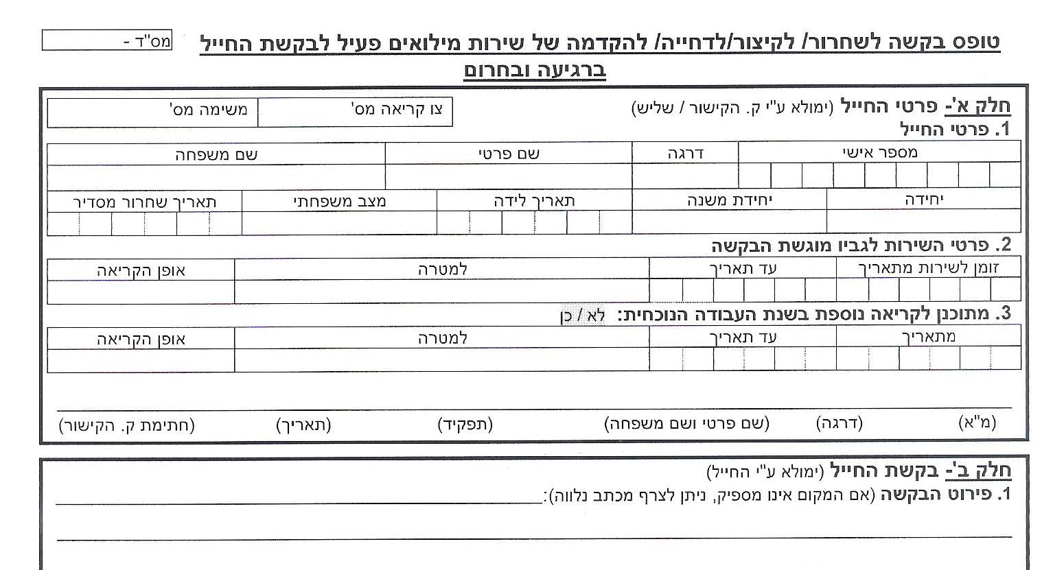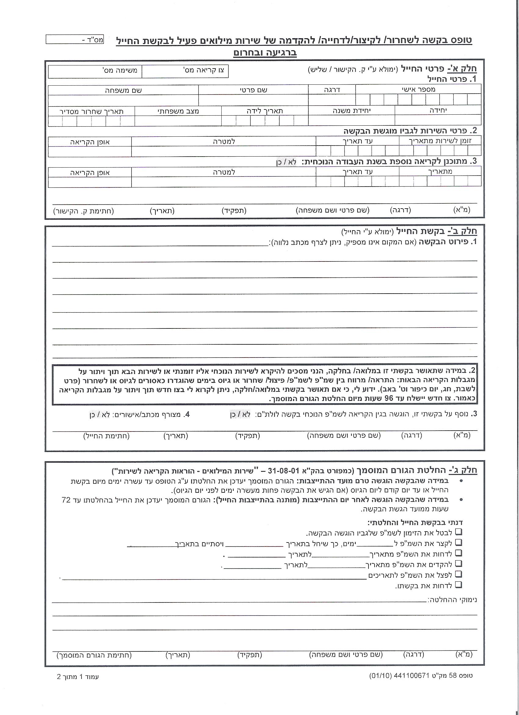טופס 58 (בקשה לשחרור/לקיצור/לדחייה/להקדמה של שירות מילואים פעיל)